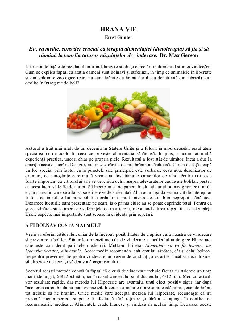 vizitati articolul complet aici : https://ro.scribd.com/doc/173422723/Alimentatia-Anticancer Pe de alta parte alimentatia are un rol important si in procesul de vindecare al pacientului. Vindecarea tuturor formelor de cancer. Chiriacpoate fi cumparata la pretul de 36.