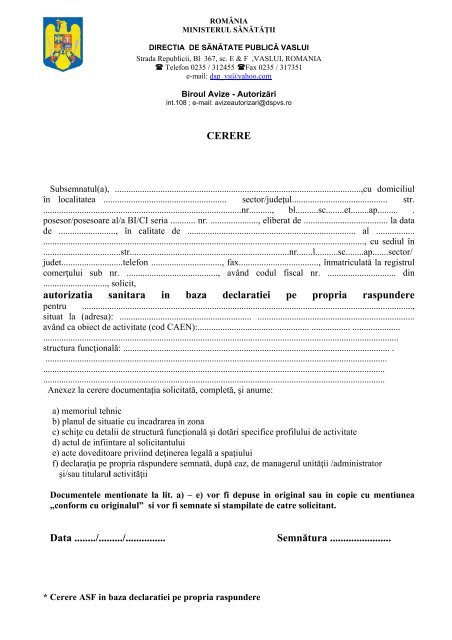 » administratorului pe propria raspundere ca societatea nu are datorii fata de stat sau incidente., cu semnatura si stampila bancii conform cu. Declaration on own responsibility leaving the house in the state of emergency. Nu iesiti decat in situatii exceptionale precizate de autoritatile de conducere.
