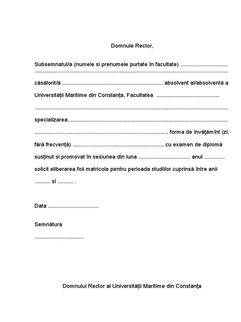 Model Cerere Eliberare Duplicat Diploma De Bacalaureat