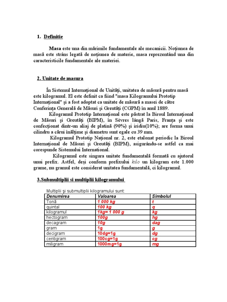 Unitati De Masura Masa