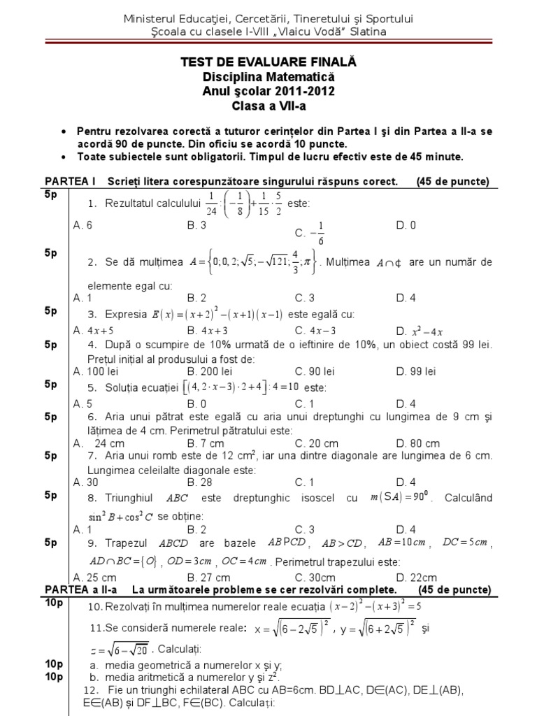 untuk "Formule De Calcul Prescurtat Clasa A 7 Test"