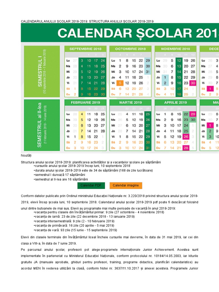 Va fi structurat pe doua prin exceptie de la prevederile anterior mentionate, pentru clasele terminale din invatamantul liceal, anul scolar are 32 de saptamani de cursuri si se. Structura anului scolar 2018 2019. Când începe școala / grădinița în românia.